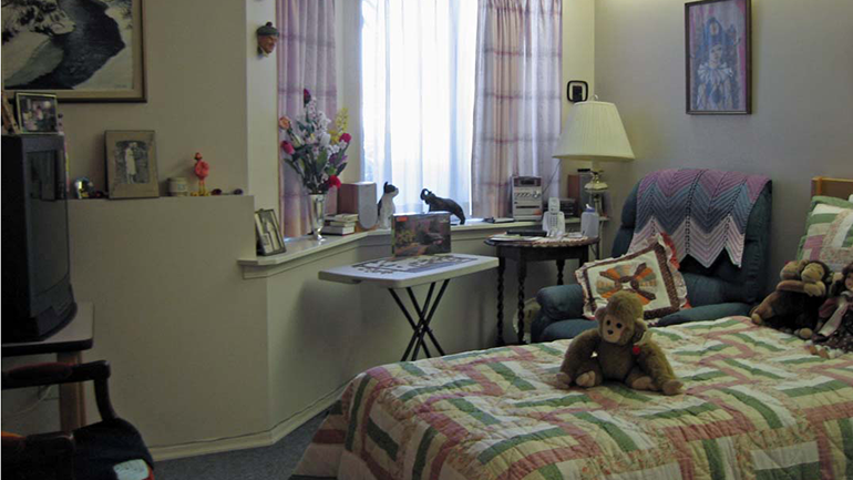 | Room features | Couples can be accommodated. Basics include a bed, dresser, lamp, linens and a night stand. Residents can also bring a radio, television, personal chair, furniture, pillows, comforters, pictures, plants and small fridges. |