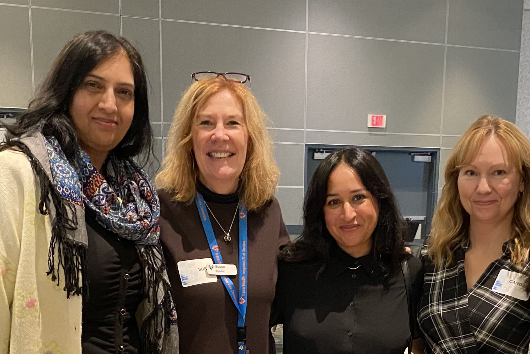 Photo: Digital Neat Board, Chilliwack General Hospital. On screen, clockwise from top left - Tamra Bing, registered speech language pathologist (RSLP); Cathy Lin, RSLP; Meara Brown, RSLP; and Natalie Moreton, RSLP