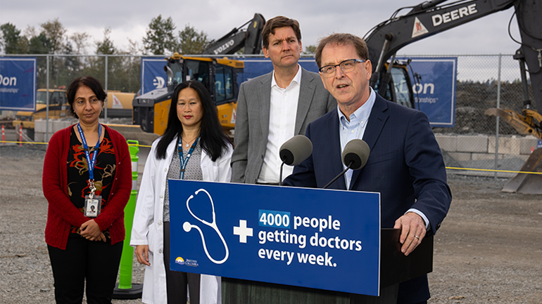 "We want B.C. to be a place where health care is always there for you, which is why we're taking action to hire more family doctors and health professionals than ever before," said Premier David Eby. "We're starting to see some good results, but there's a lot more we need to do. We can't afford to slash health care budgets when we need to be hiring even more doctors and nurses so B.C. families get the care they need when they need it."