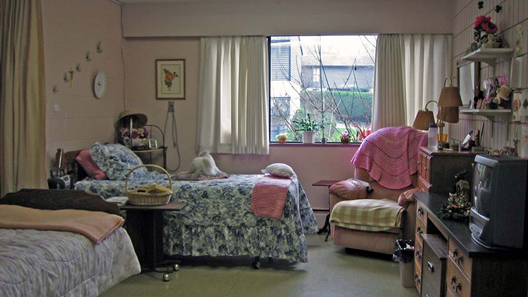 | Room features | Rooms include a bed, dresser, night table, basic linen, clothes closet, care supplies and incontinent products. Residents may also bring a limited amount of furniture, such as a radio, television, personal chair and dresser, pictures and plants to personalize the room. Housekeeping and laundry services provided. |