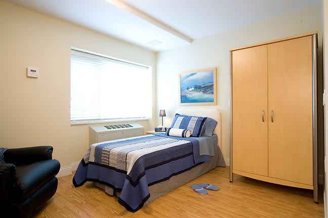 | Room features | All suites include a small fridge, clothing wardrobe and window blinds. Residents provide their own furnishings. Couples are accommodated. Weekly scheduled light housekeeping and linen service (sheets and towels) is provided. Personal laundry is the responsibility of the tenant. |