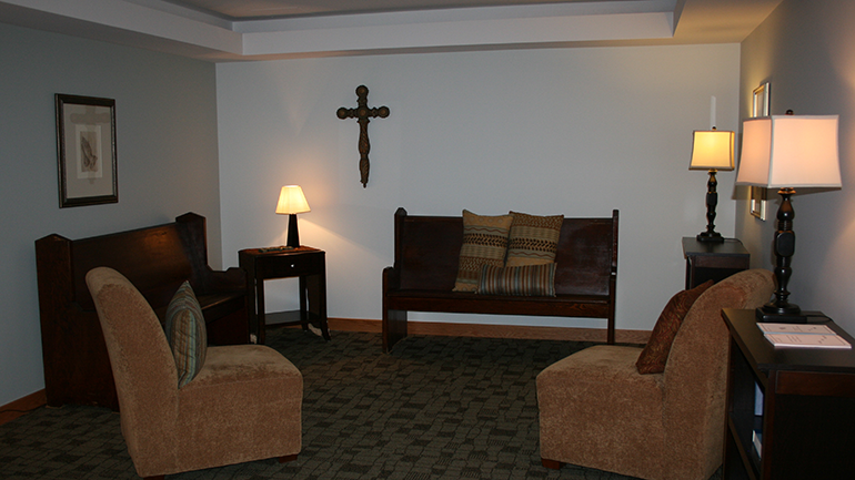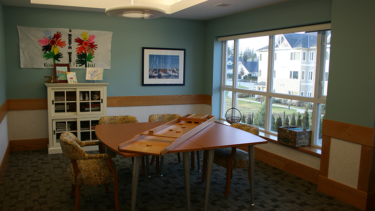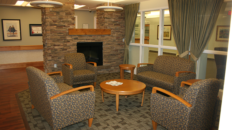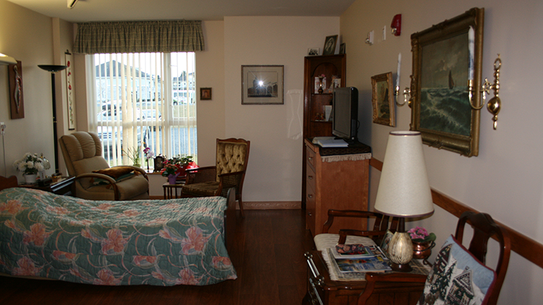 | Room features | Rooms are spacious and include hospital bed, nightstand, wardrobe and upright dresser. All linens and towels are supplied. Telephone and cable are available for a fee. Residents are encouraged to bring in pictures and other mementos to fill the memory boxes outside of their room. Pictures can be hung with the assistance of staff. Television and comfortable recliner chair can also be brought in. In-room television, telephone and Wi-Fi available. |