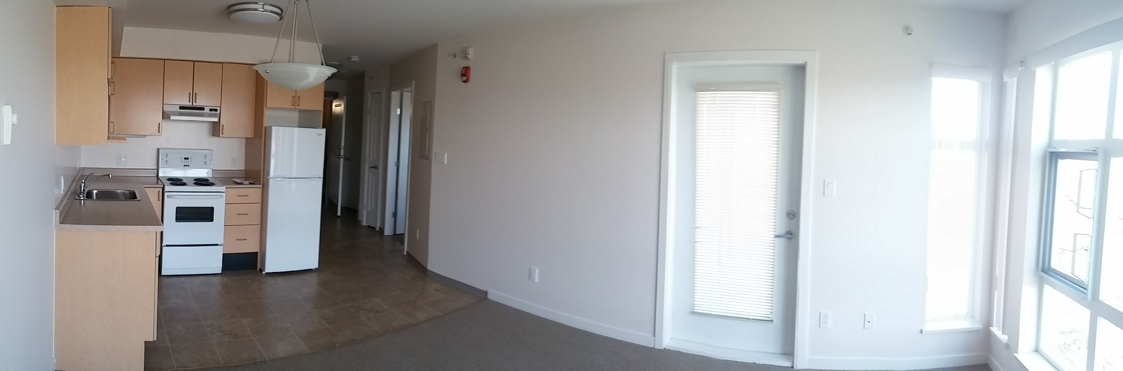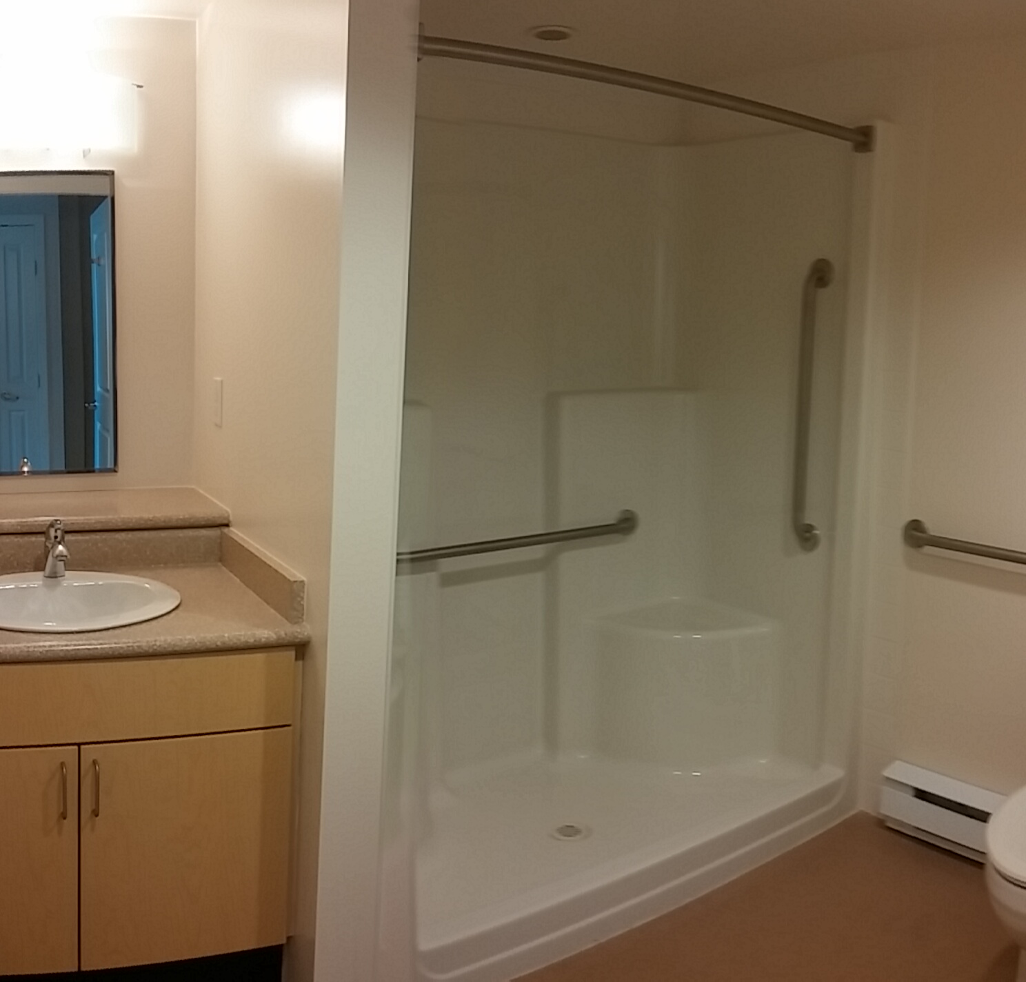Evergreen Timbers has 58 publicly subsidized, one-bedroom units with bathrooms equipped with grab bars and a walk-in shower. Also includes a full-size fridge and stove, in-unit storage and balcony.