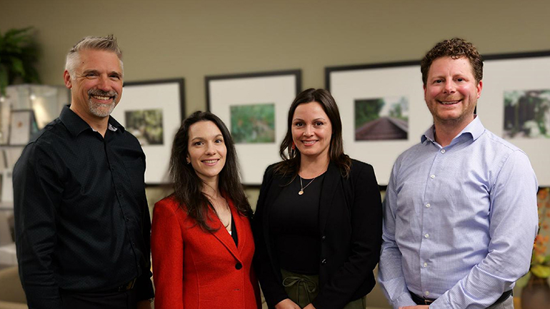 Photo (from left to right): Scott Blessin, senior director, Lower Mainland Emergency Management, Health Emergency Management BC; Dr. Emily Newhouse, medical health officer; Amanda Laboucane, interim vice president, Indigenous Health and Cultural Safety; and Daniel Vigue, director, Supply Management and Utilization
