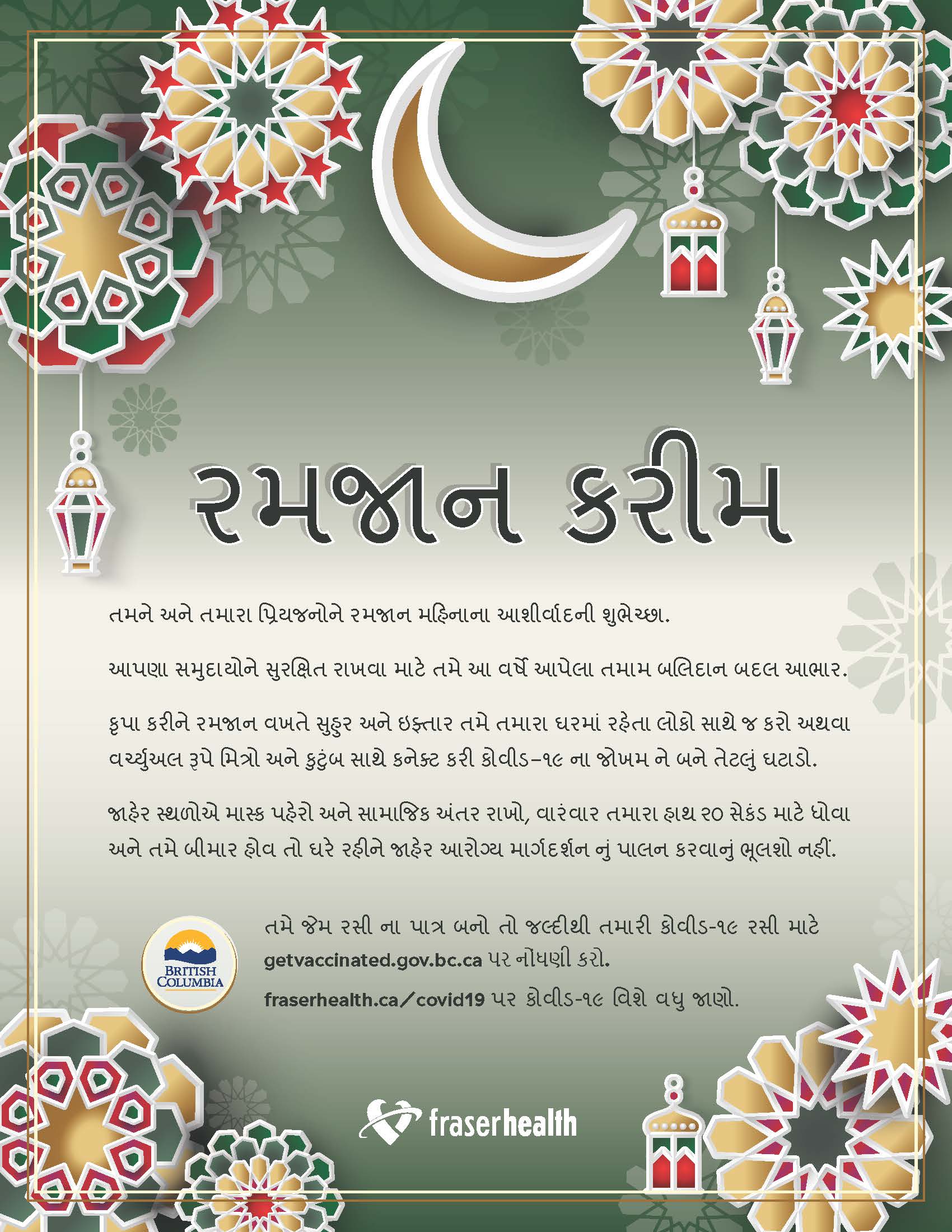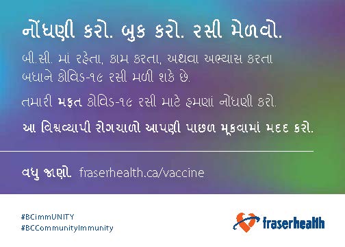 You can find more COVID-19 information in Gujarati on the BC Centre of Disease Control website.