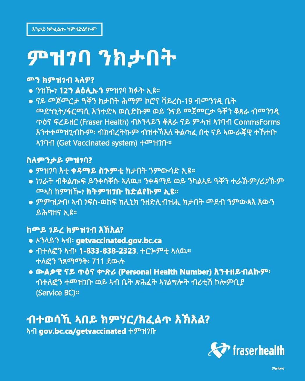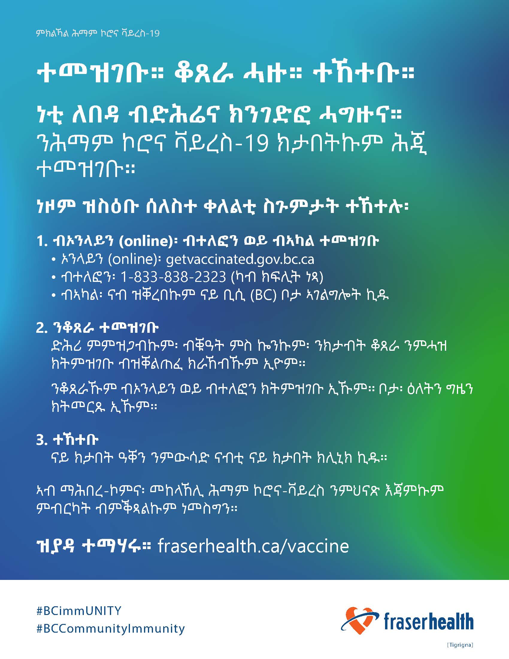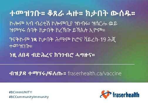 You can find more COVID-19 information in Tigrigna on the BC Centre of Disease Control website.