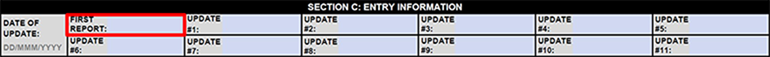 - If this is the first-time reporting: Enter today’s date beside “FIRST REPORT”