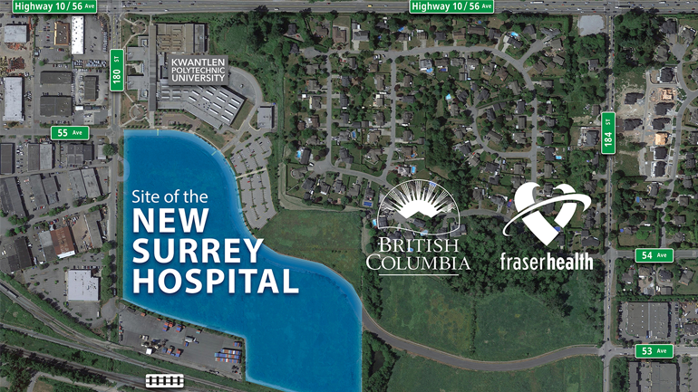Surrey's new hospital will be built in Cloverdale beside the Kwantlen Polytechnic University campus at 5500 180 St.