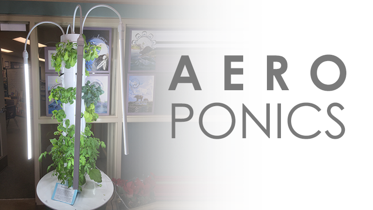 Aeroponics is the process of growing plants in an air or mist environment without the use of soil. A nutrient rich solution constantly bathes plant roots causing the plant to grow quickly. Each aeroponic tower garden has space for twenty plants and requires special growing lights for optimal growth. Leafy greens are typically ready for harvest in about three weeks!