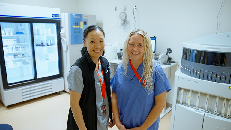To reduce HER2 result wait times for patients like Tania, Fraser Health and Royal Columbian Hospital Foundation are teaming up to cut turnaround from weeks to days. A new $150,000 diagnostic analyzer at Royal Columbian Hospital allows pathologists to quickly determine if a tissue sample is HER2 positive.