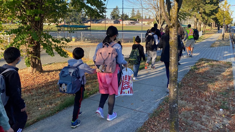 Gibson Elementary in Delta launched its Walking School Bus initiative in 2022 after receiving a grant from Fraser Health through the Vision Zero Road Safety Grant Program, designed to improve vulnerable road user safety in local communities.