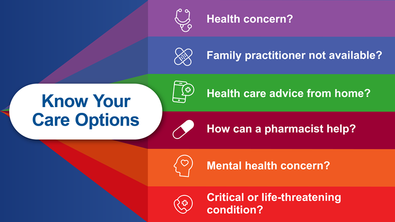 To learn more about where to go for what health concern, download this poster or visit fraserhealth.ca/careoptions
