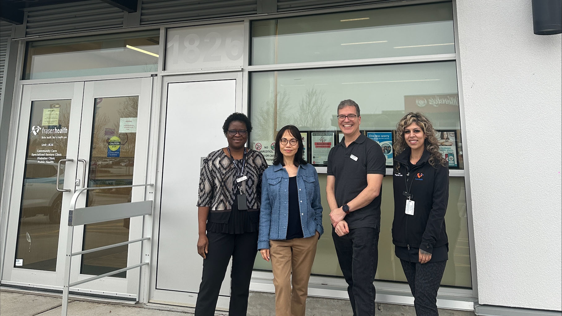 (Photo L to R): Miriam Maphala, Clinical Care Coordinator RN; Pauline Dan, Manager Clinical Operations primary care services; Dr Tim Foggin, Medical Director South Delta Urgent primary care, Physician; Zed Lenis, Clinical Nurse Educator, RN