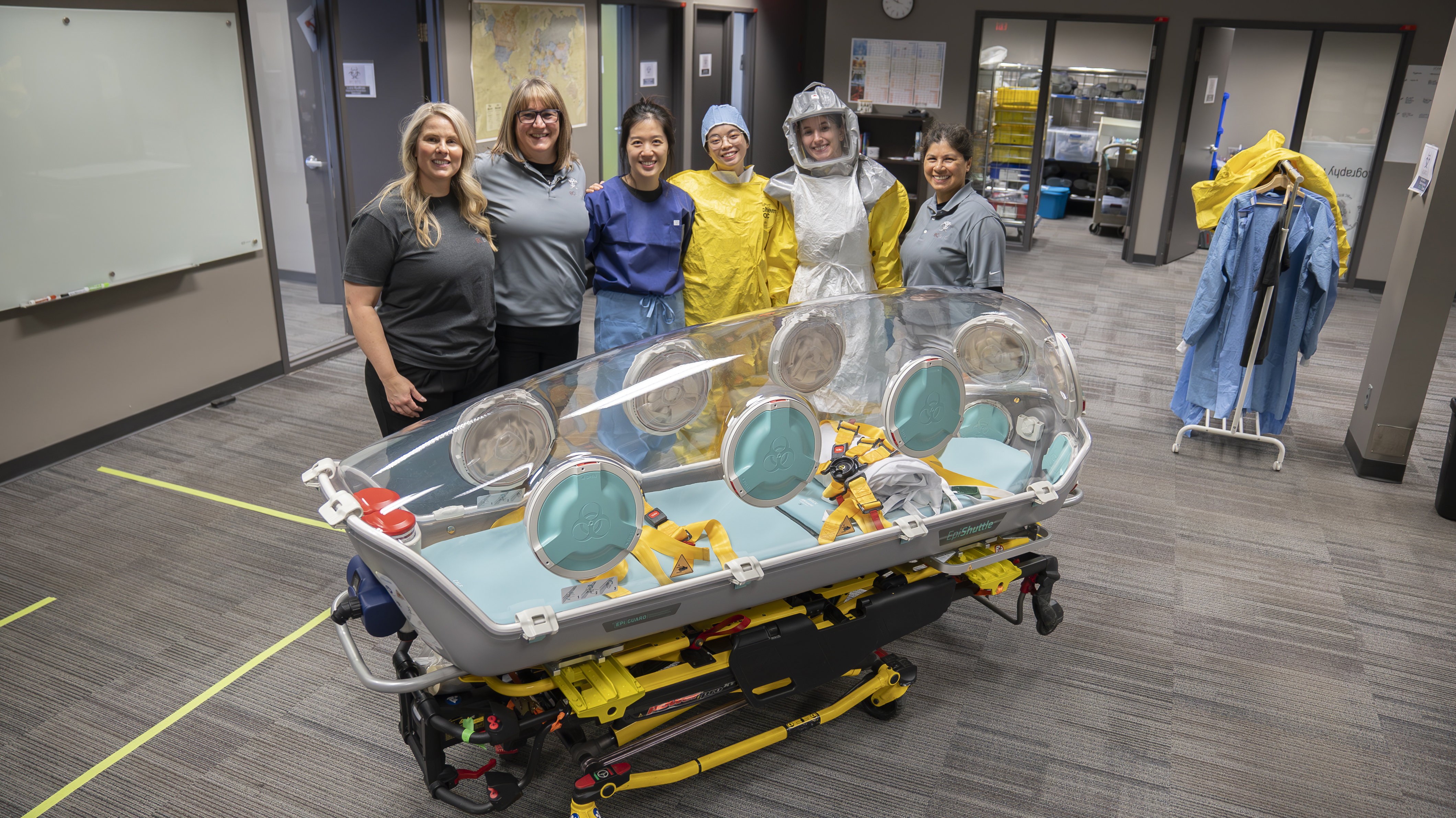 Jones, along with paramedics, nurses, logistics experts, and occupational health and safety exposure prevention specialists from Fraser Health, BC Emergency Health Services and Health Emergency Management BC, recently completed training on the deployment and safe use of the EpiShuttle. They now have the skills to manage complicated, high-risk patient moves as well as the certification to train other health care professionals.