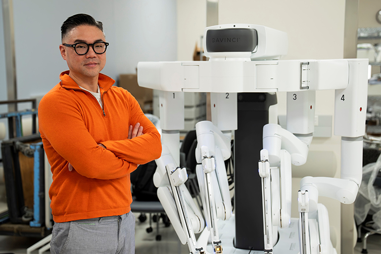 Photo: Dr. Brian Yang, urologist and local department head of surgery at Royal Columbian Hospital, with the new surgical robotic system