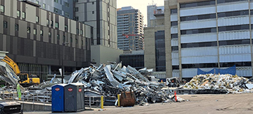 The demolition of the Interim Support Building will make way for more than 90 surface parking spaces. In addition, there will be more than 350 underground parking stalls in the new tower.